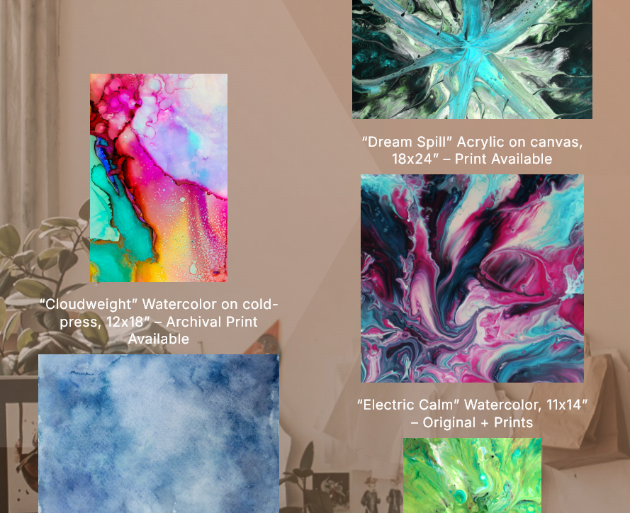 • Mobile-optimized gallery block for acrylic and watercolor pieces